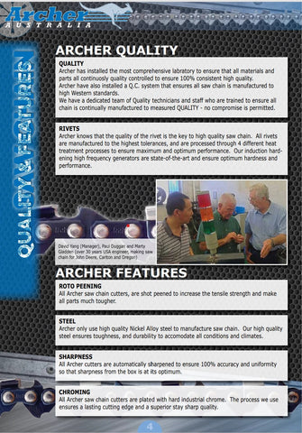 (3) Archer only uses high quality Nickel Alloy steel to manufacture their saw chain. The high-quality steel ensures toughness and durability to accommodate all conditions and climates.